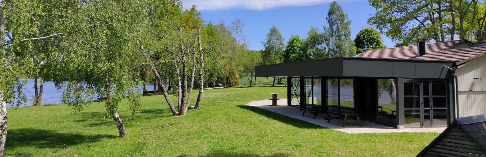 Salle et terrasse disposent d’une vue panoramique sur le plan d’eau.